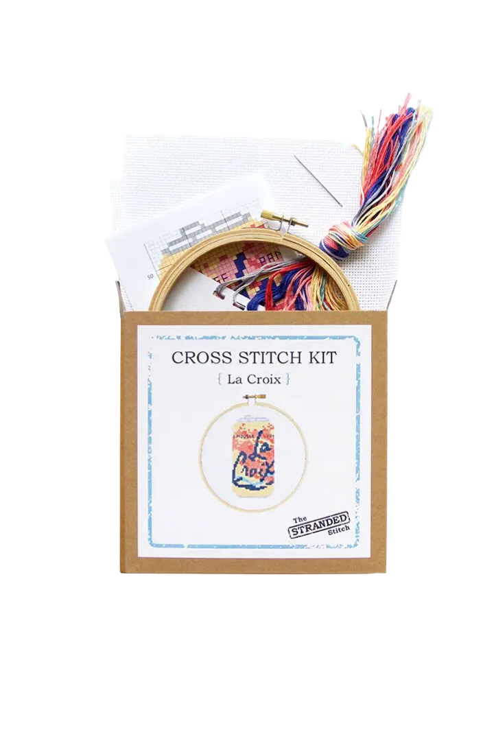 La Croix Pamplemousse, the one, the only! The colors of this can, the pamplemousse of its flavor flav have propelled it to the top of everyone's sparkling water lists. Stitch your way to a brighter day with this cute af cross stitch kit. Cross stitch is medicine for our hectic times and the perfect escape from our phones. Keep your hands busy and your mind calm, bonus you get a cool piece of art!