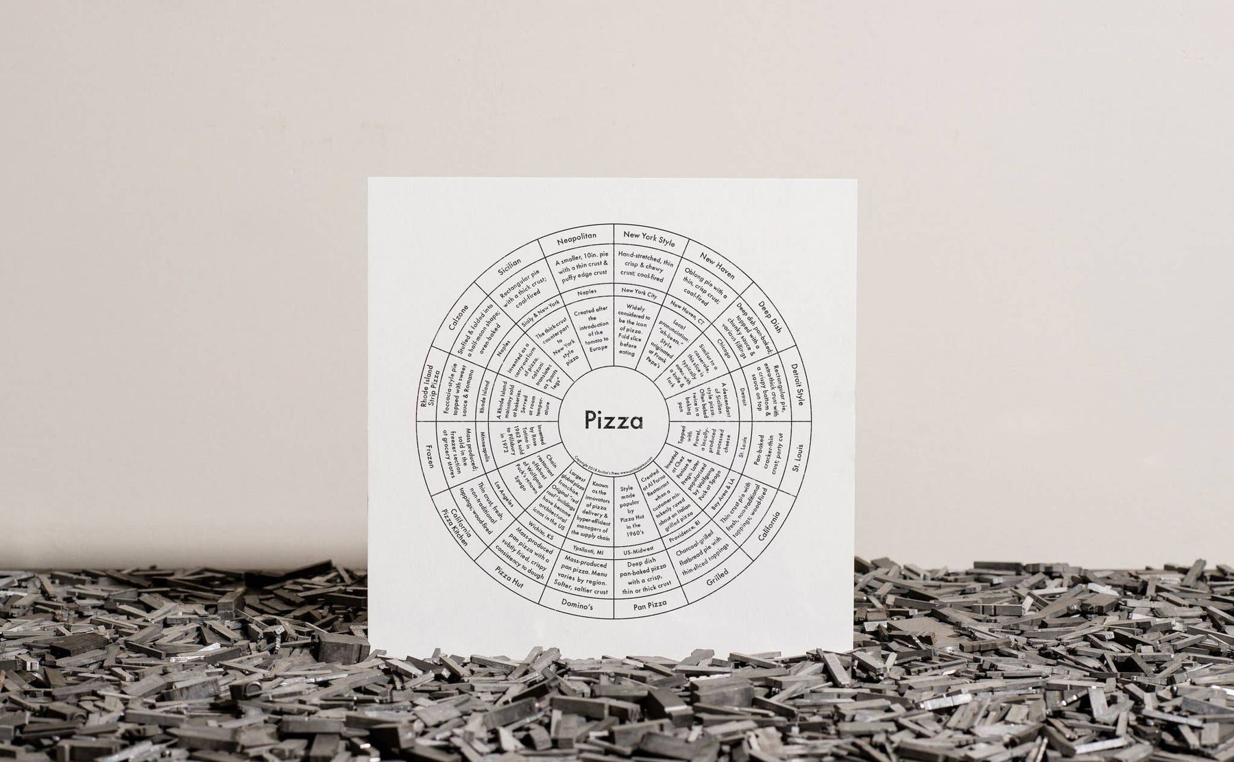 Pizza is the most beloved food in America. However, it often means different things to different people. When my family moved to Rhode Island (a mere 45 minutes from our home in Massachusetts), we encountered a totally bizarro form of pizza that is known only in Rhode Island. 8'' x 8'' Letterpress. Copyright 2022 Archie's Press.