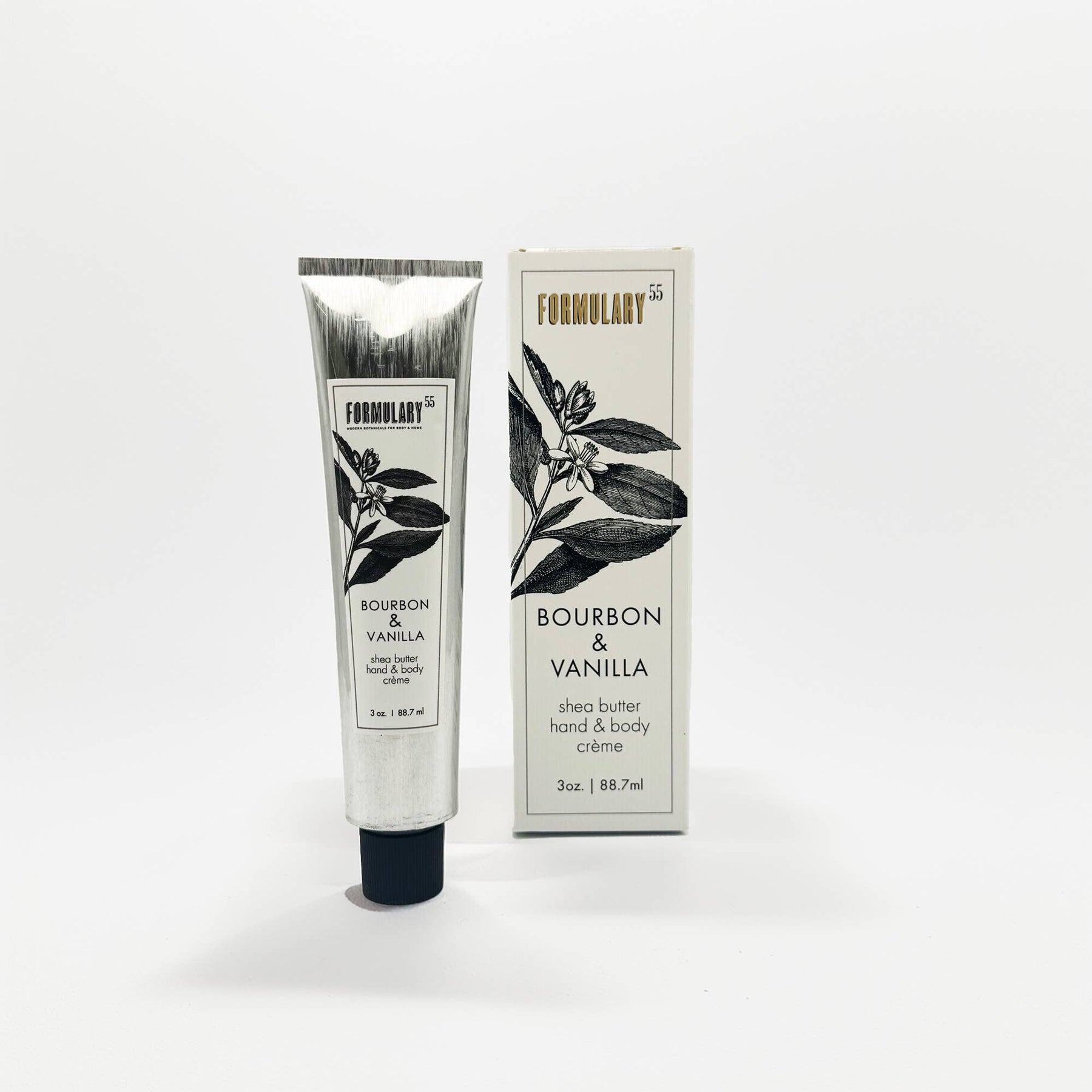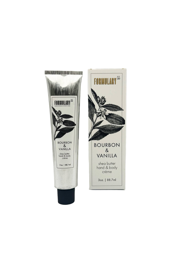 One of our all-time bestsellers, our Bourbon & Vanilla hand and body creme is now in a convenient size that's TSA carry-on approved and perfect for customers who want to take their favorite scents 'on-the-go. Each tube comes elegantly packaged in a gift box designed specifically for its fragrance, featuring the signature black and white botanical designs that define the Formulary 55 aesthetic.
