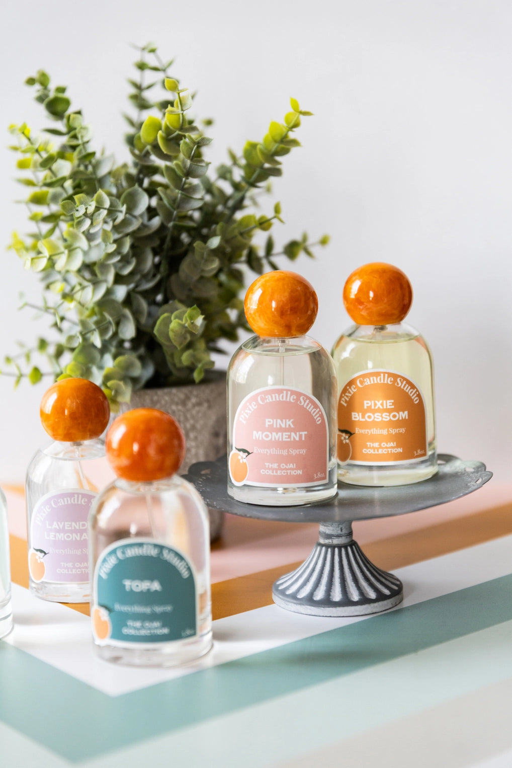 Introducing our Pixie Blossom Everything Spray—now in a spritz for literally everything! What’s an Everything Spray, you ask? It’s a room refresher, linen spray, and—get ready—a body spray too! This signature scent smells like a burst of orange blossoms, with hints of bergamot, neroli, and jasmine. Freshen up your world, one spritz at a time!
