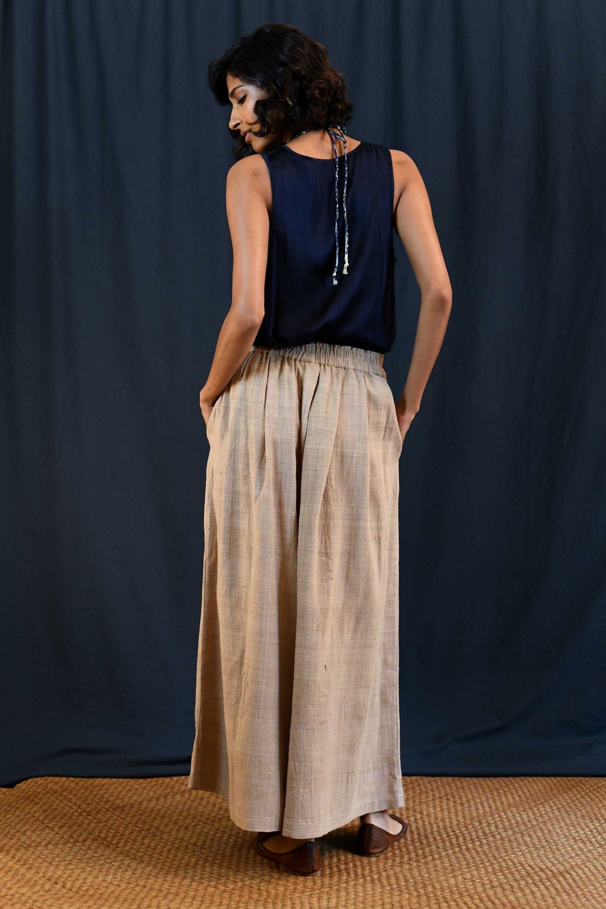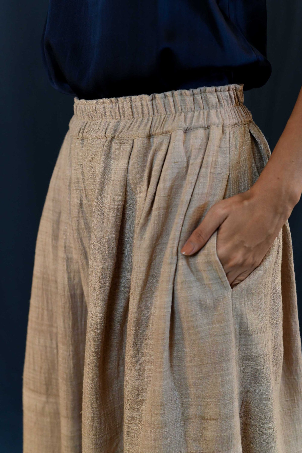 Made from peace silk, these pants are crafted without harming silkworms and dyed using natural dyes. Each pair is handwoven by skilled artisans in Assam, India.