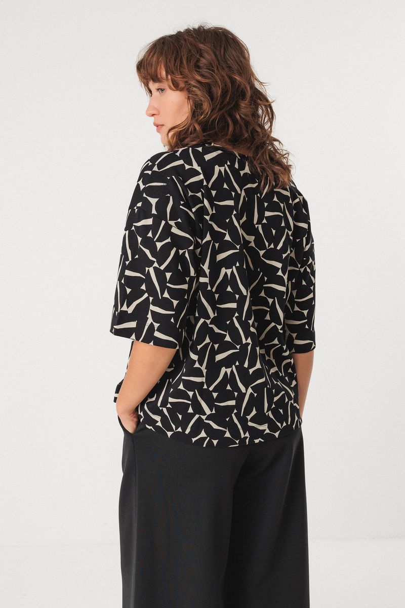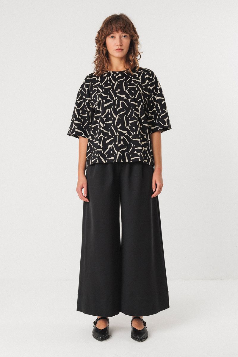 Loose-fitting top with a round neck and short sleeves in GOTS certified organic knit.